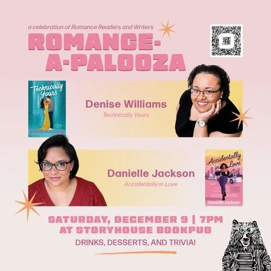 It’s a ROMANCE-A-PALOOZA with romance writers Denise Williams and Danielle Jackson at Storyhouse Bookpub, Saturday, December 9 at 7pm.